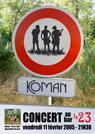 | > | Concert au 23 Le 11 février 2005 - 21h30 Premier concert des Koman, entre amis principalement mais avec une ambiance digne de ce nom ! 23, rue Voltaire - 49100 ANGERS - www.le23.net |